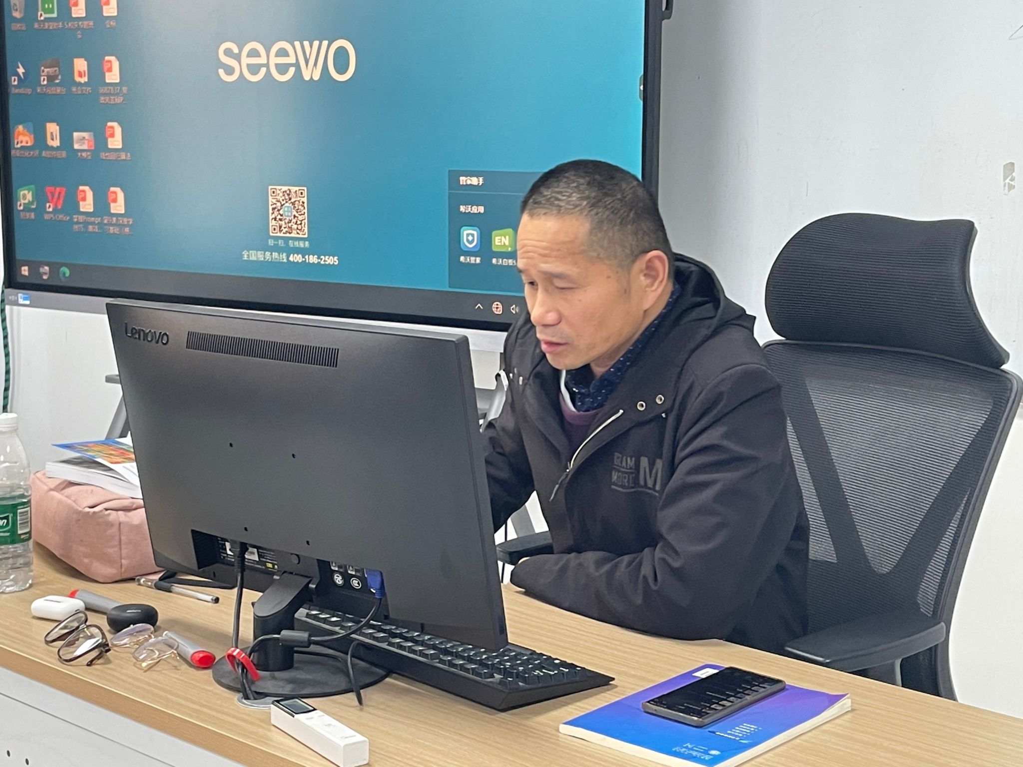 在集体备课环节,蔡成军老师作为说课主讲人,就《信息技术》课程中“表格操作”章节的收尾工作以及“演示文稿”章节的开启与衔接等内容,进行了教学设计与经验分享。
