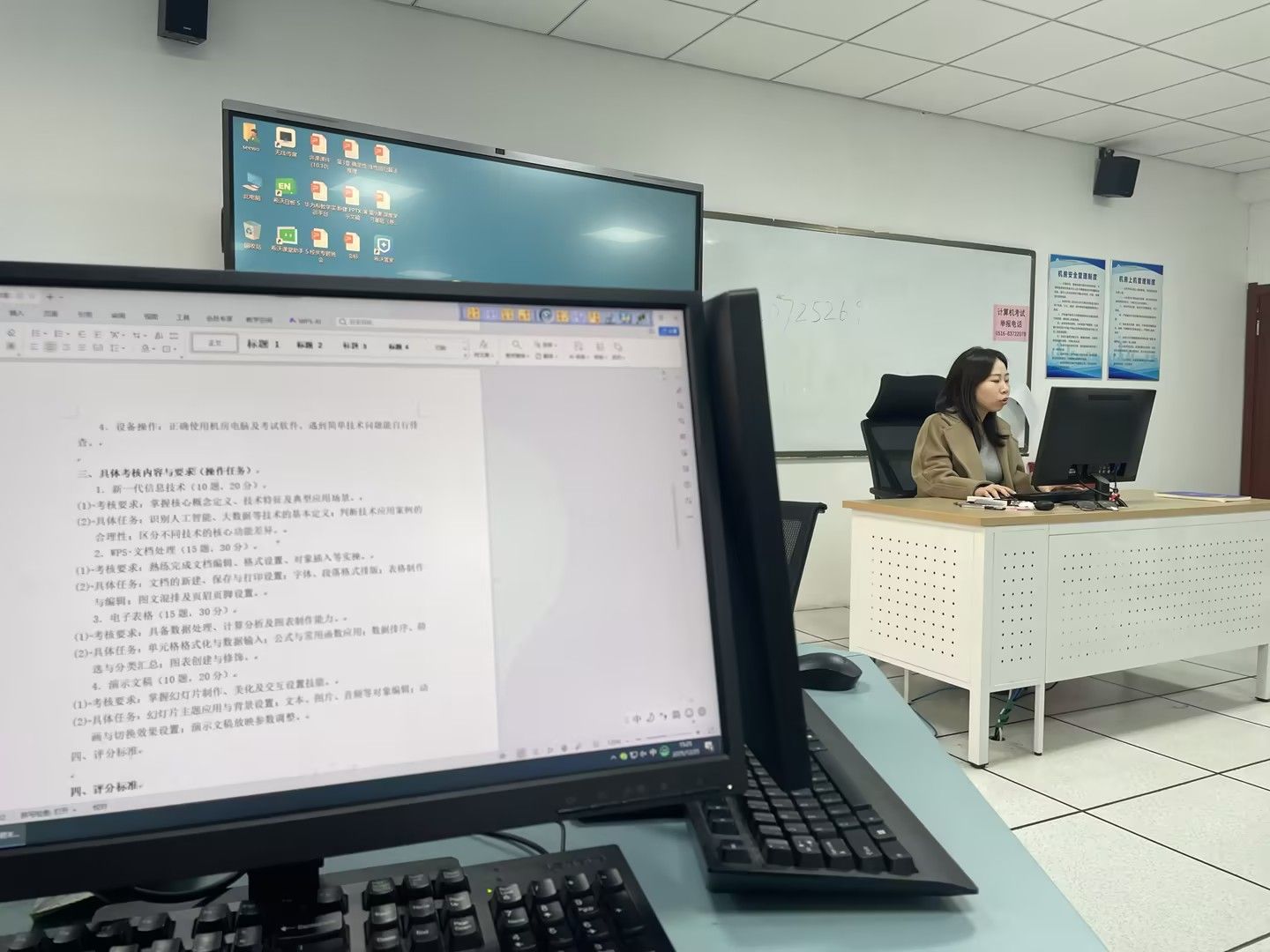 集体备课环节,《信息技术》备课组长朱聪详细解读期末考核方案。方案以智慧职教题库为核心,涵盖新一代信息技术、WPS办公软件实操等四大模块,采用机房上机闭卷形式,结合平时过程性考核与期末终结性考核,明确了评分标准与实操要求,为课程考核规范化提供依据。