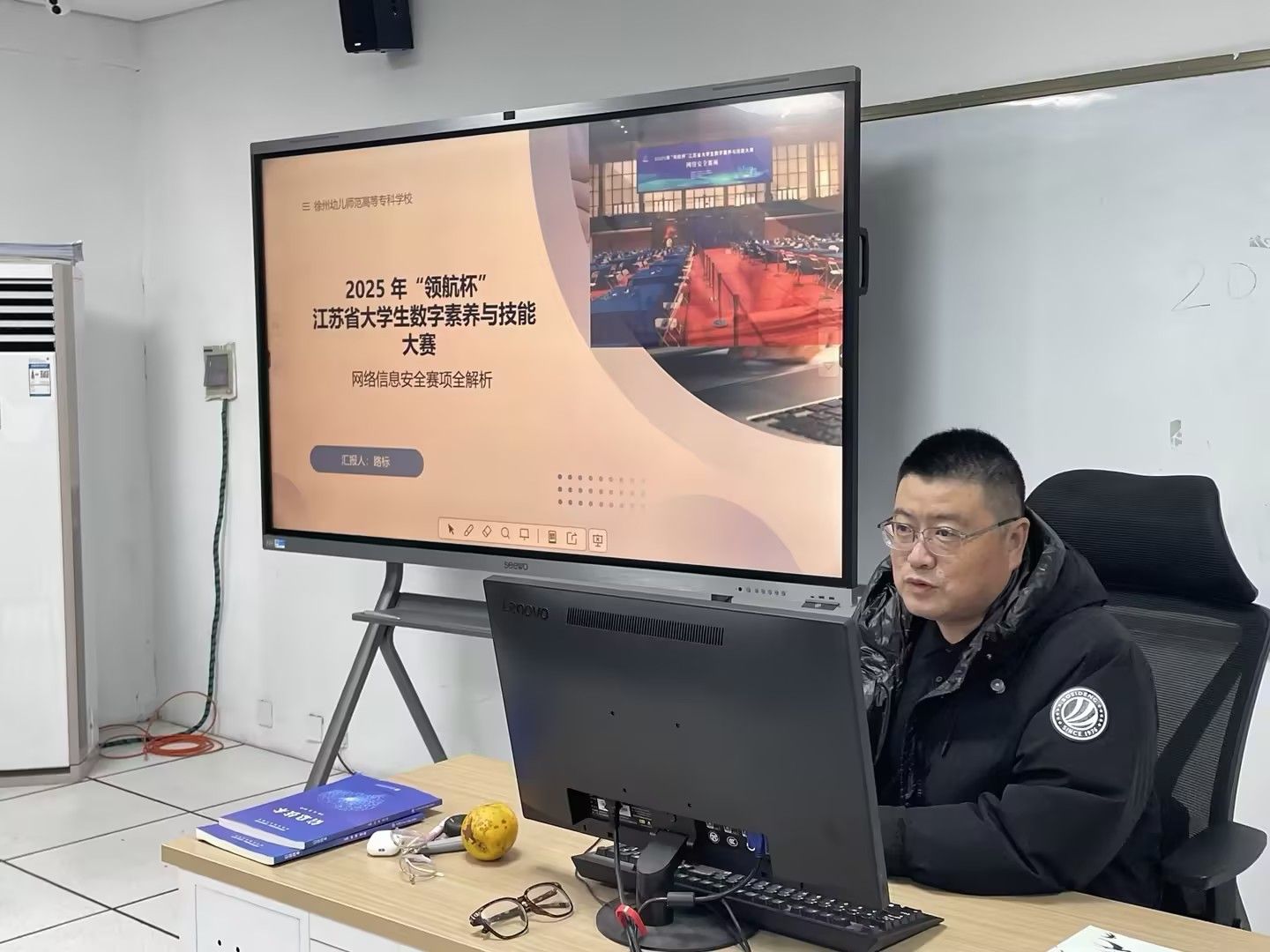 为提升网络信息安全领域教学与备赛指导水平,12月4日,人工智能学院开展学术月活动教师讲座。我院路标教授主讲,主题为 “2025 年‘领航杯’江苏省大学生数字素养与技能大赛网络信息安全赛项全解析” 专题分享,学院全体教师参与学习。