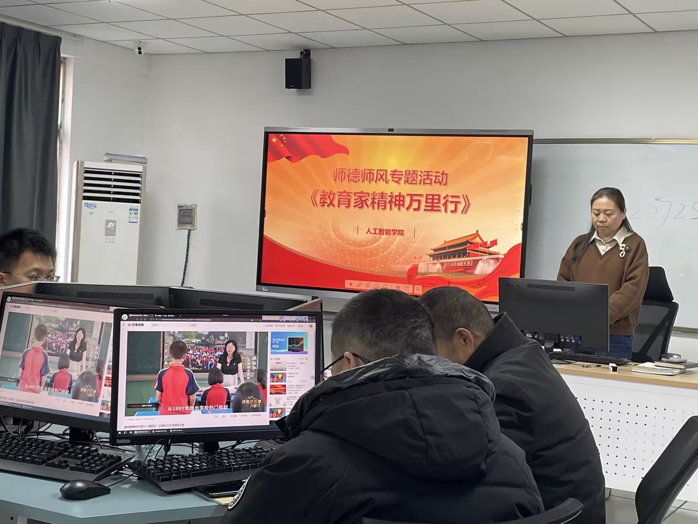 为深入弘扬教育家精神,强化师德师风建设,近日,人工智能学院党支部组织全体教师开展“教育家精神万里行”专题学习活动,通过集中观看模范教师赖丽华先进事迹视频、分组研讨等形式,引导教师以榜样为镜,践行育人使命。本次活动由人工智能学院党支部副书记陆霞主持,全体党员教师参加。