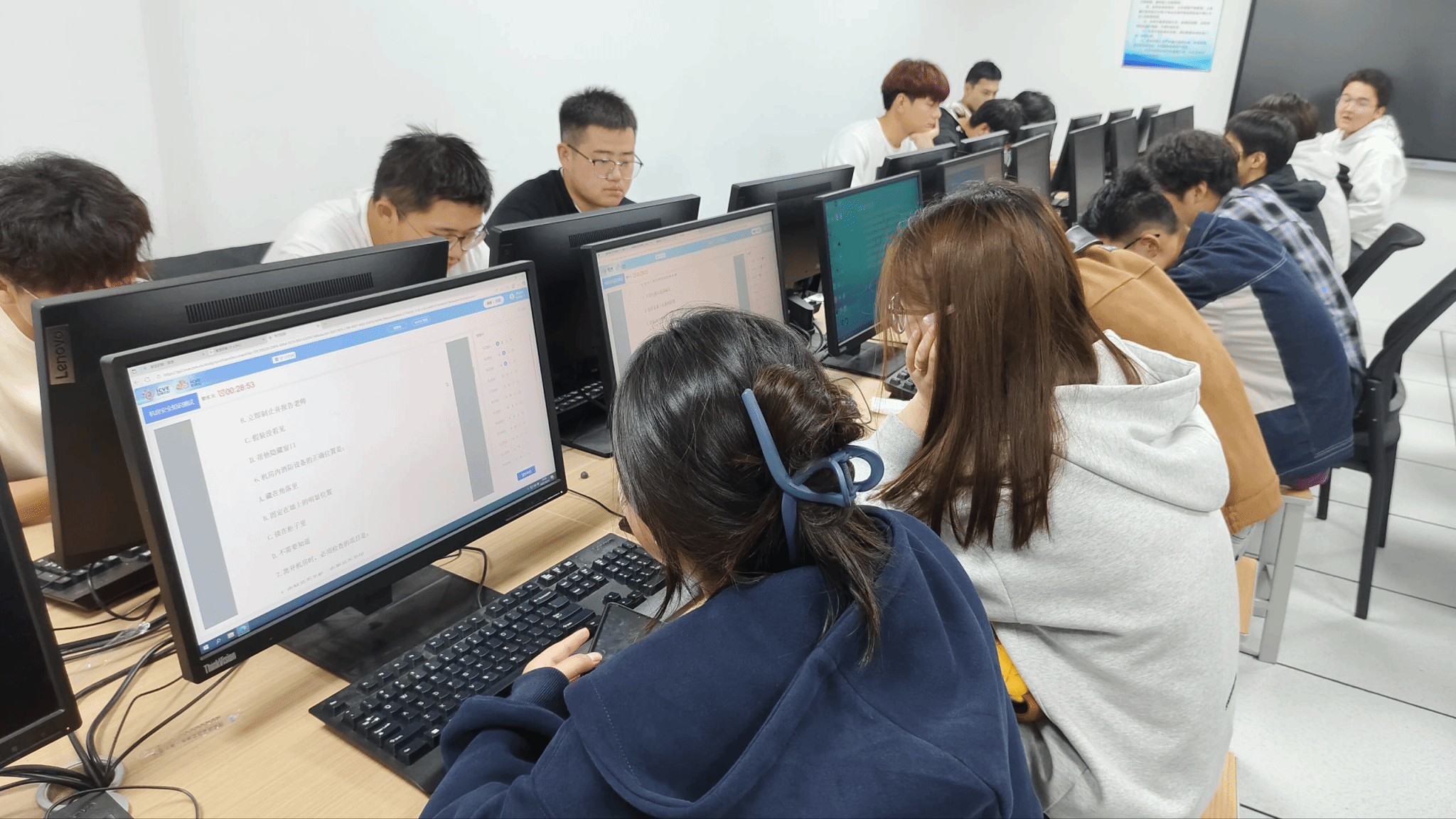 竞赛以“筑牢机房安全防线,守护数字校园”为主题,内容涵盖机房用电安全、消防安全、网络防护、设备操作及行为规范五大模块。考试过程中,同学们全神贯注、认真作答,现场秩序井然。