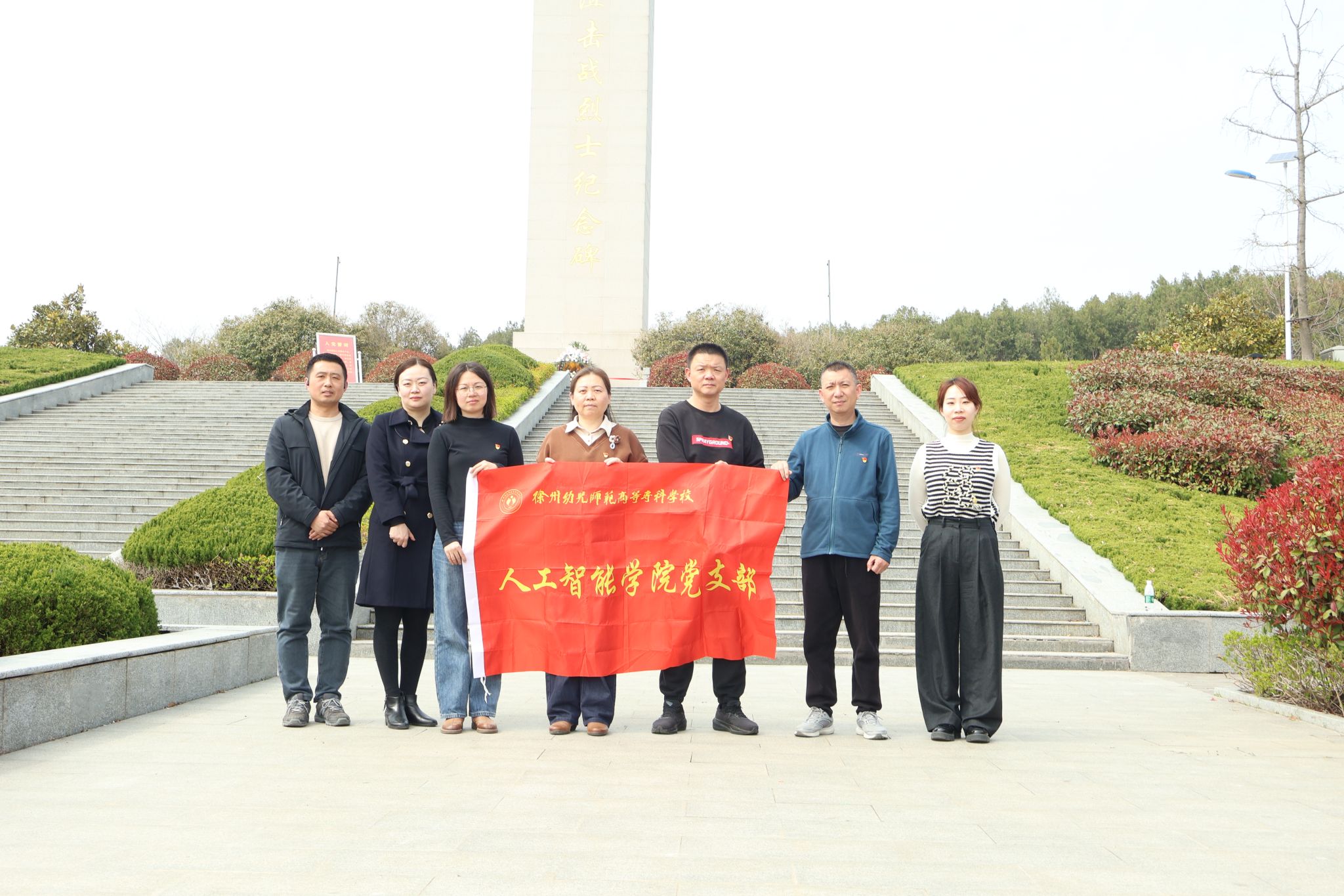 为缅怀革命先烈,传承红色精神,清明节前夕,人工智能学院党支部组织全体党员前往徐州铜山狼山阻击战纪念塔,开展清明祭扫暨主题党日活动。