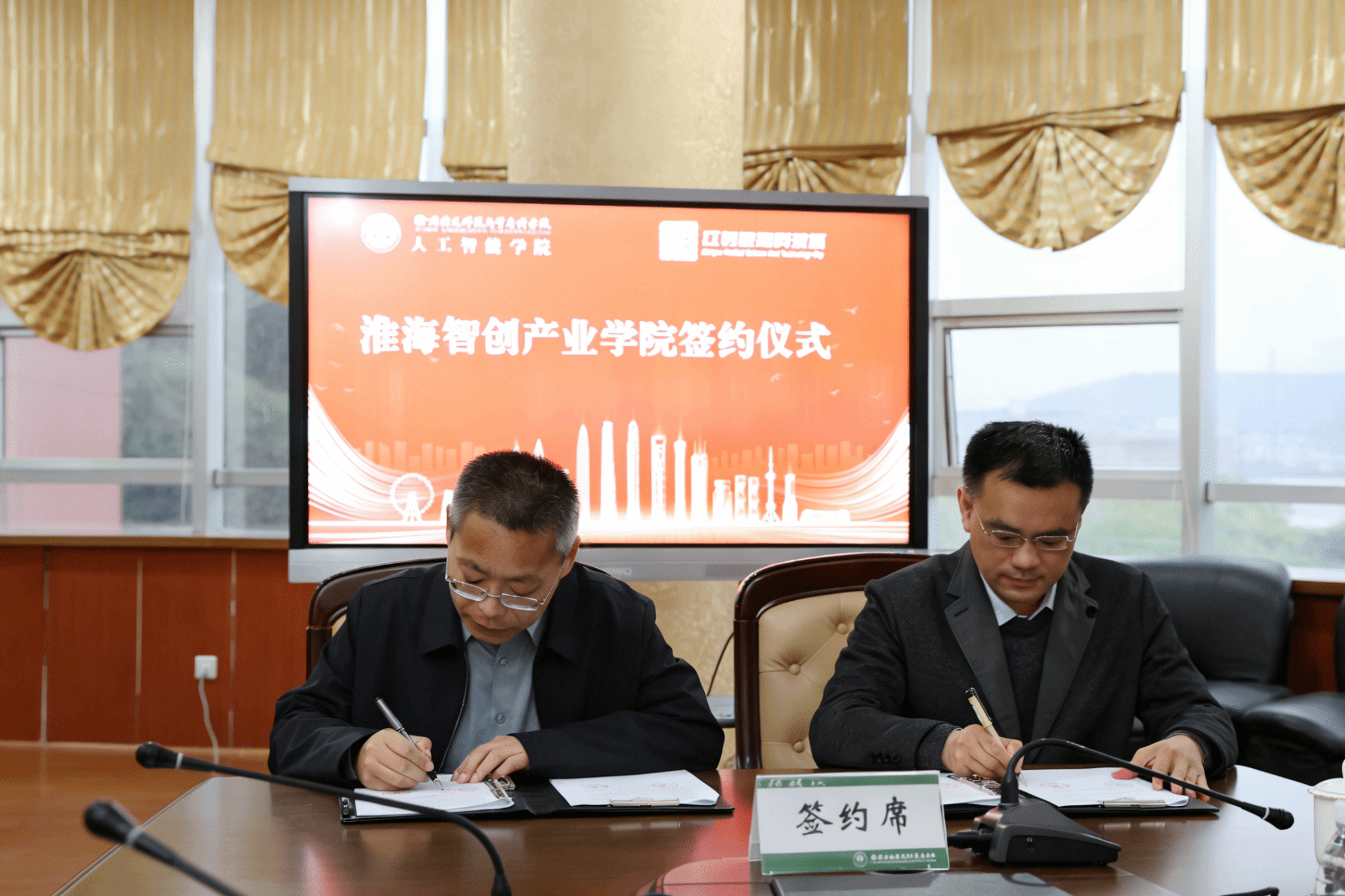 为深化产教融合、校企合作,推动人才培养与产业需求精准对接,4月8日,淮海智创产业学院签约仪式暨实习基地座谈会在我校顺利举办。人工智能学院与江苏淮海科技城正式签约,共建产业学院与实习就业基地,进一步推进校地协同育人工作。此次成立的淮海智创产业学院是我校第6家产业学院,同时也是人工智能学院成立以来的首家产业学院。